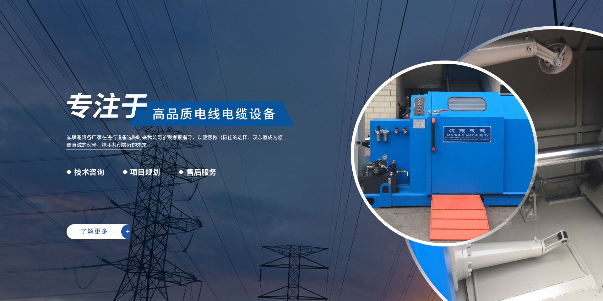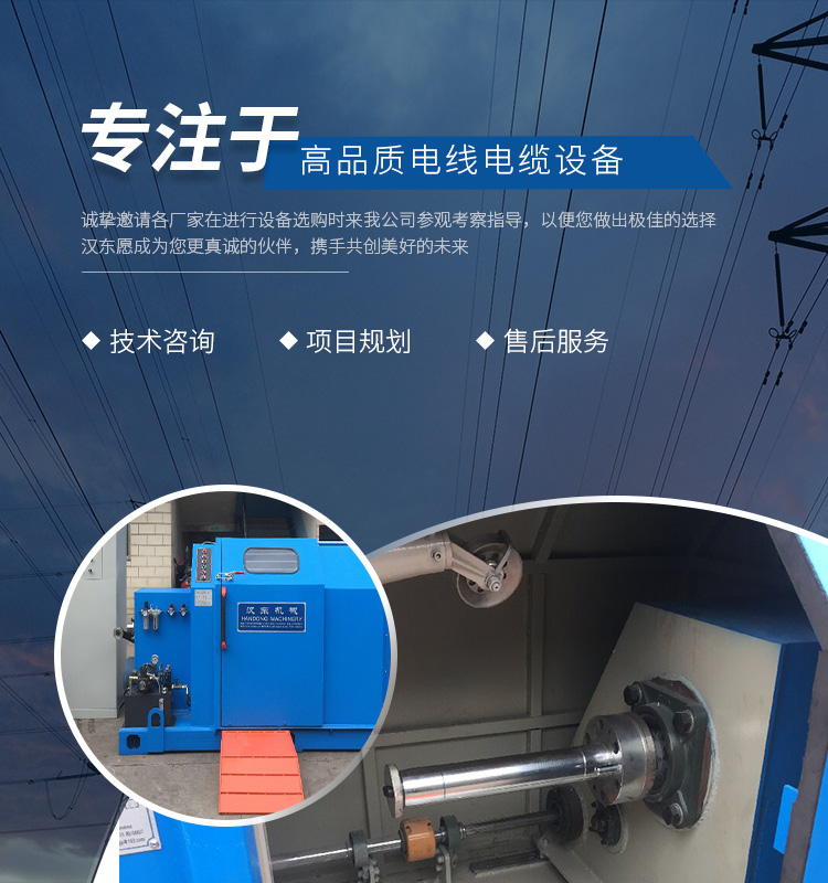 常州漢東機(jī)械始創(chuàng)于2006年,是集電線電纜機(jī)械設(shè)計(jì)、開(kāi)發(fā)、制造、安裝、調(diào)試為一體化的高科技企業(yè)。本公司自開(kāi)業(yè)以來(lái),積極引進(jìn)日本,歐美等國(guó)外電線電纜設(shè)備之先進(jìn)技術(shù),先后成功推出了達(dá)到行業(yè)先進(jìn)水平的電線電纜設(shè)備,主要產(chǎn)品有擠出、繞包、束線、成纜等電線電纜固定設(shè)備。在提供系統(tǒng)設(shè)備的同時(shí),還向客戶提供售前技術(shù)咨詢(xún)、項(xiàng)目規(guī)劃、以及售后服務(wù)。我公司本著“以人為本、科技先導(dǎo)、用戶為上”的宗旨,為客戶提供牢靠的產(chǎn)品與省心的服務(wù)。漢東愿成為您更真誠(chéng)的伙伴,攜手共創(chuàng)美好的未來(lái)!